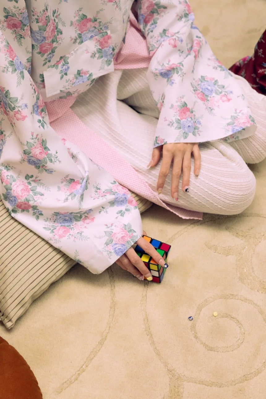 With her FW26 collection, designer Jen-Fang Shueh of Jenny Fax gives shape to the feeling of time passing. Consumed by this sensation, Shueh found herself reflecting on the power of personal memory as our last bastion of unique chaos; a place before algorithms, where our identities are mapped only by our family trees. Crafting her memories into the room, she made every visitor feel the warmth of her home while keeping her codes of color and whimsical silhouettes. The presentation unfolded like a living photo album, the models appearing as if revived from framed memories sitting on a shelf. In a moment of consensual voyeurism, the audience witnessed personal creation in its most raw form.