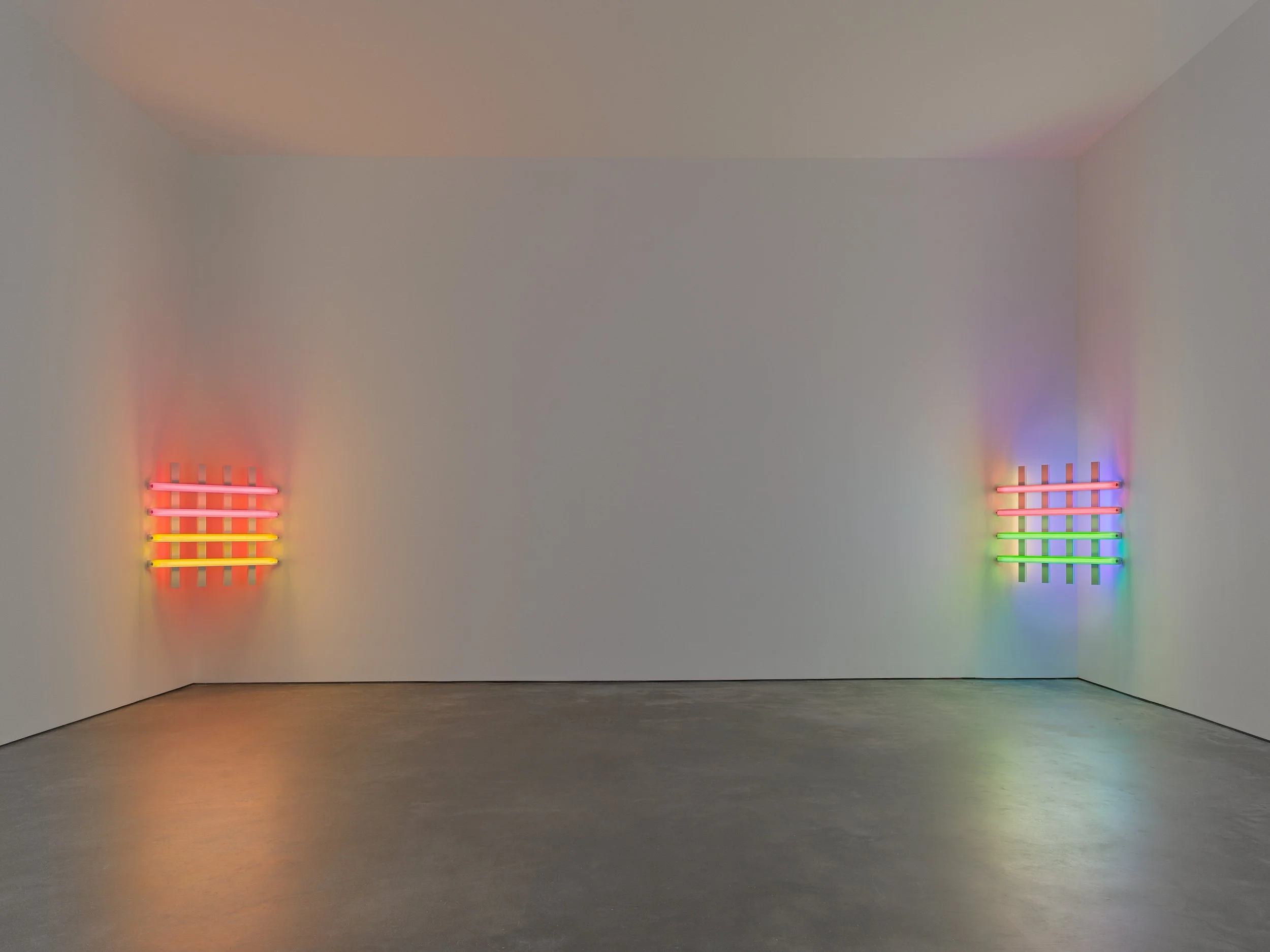 Installation view, Dan Flavin: Grids, David Zwirner, New York, January 15–February 21, 2026.