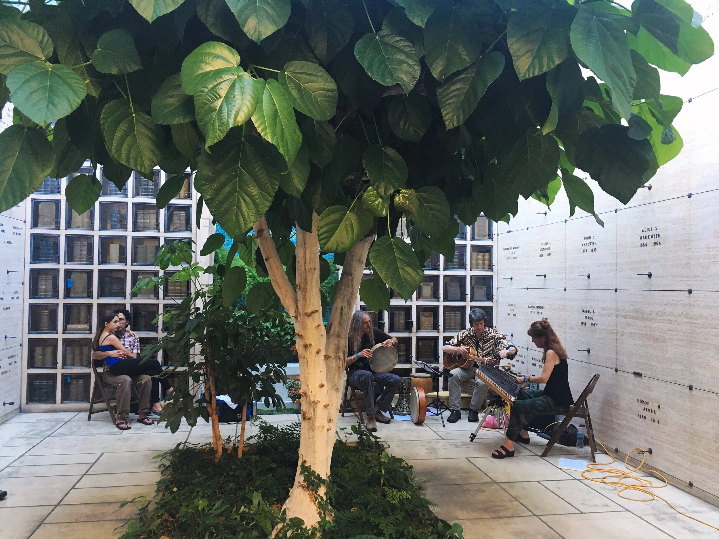 Each summer solstice in Oakland, California, within a stunning columbarium and mausoleum reimagined by Julia Morgan in a former transit center beside Olmsted’s Mountain View Cemetery, a day-long performance of new, classical, and experimental music takes place. Nearly a hundred musicians fill the labyrinthine architecture and gardens with porous sound. It is a joyful event I look forward to each year, skillfully conceived and organized by Sarah Cahill, featuring a beautiful ensemble of diverse musicians that score an experience encountered differently by every fortunate participant: a superabundance of sonorous conviviality resonating generously until the sun sets on the longest day of the year.